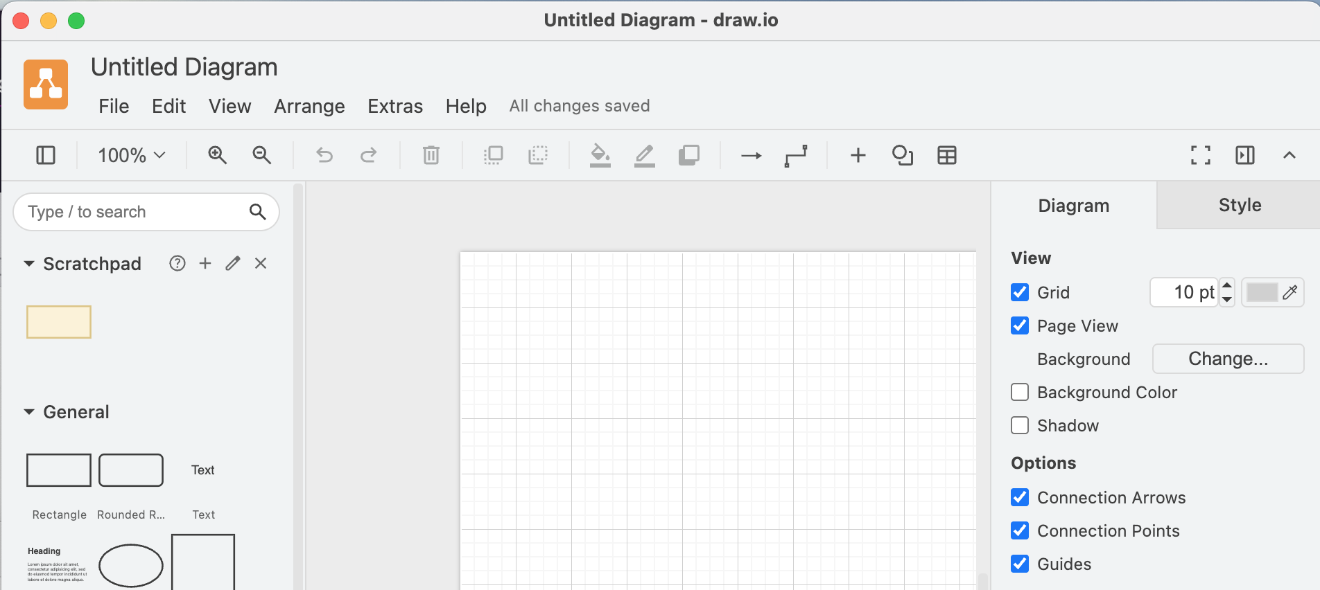 I’m using draw.io to create diagrams or as part of workshops to visualize ideas or organize information. I almost never print any of the diagrams I’m creating, but the app defaults to a page view. I find that I naturally gravitate to trying to fit things within the default page size and get a bit irritated when pages are automatically added or removed depending on where I move stuff. Fortunately, page view can be disabled in the diagram options by unchecking the checkbox in the diagram menu, or via the View menu. Since I do that for pretty much every diagram, I wondered if there’s a better way. Changing the default so that new files start with the whole canvas available is not that difficult once you find the right configuration options. Getting there took me a bit, so I’m writing this quick guide for you (and future me). ...